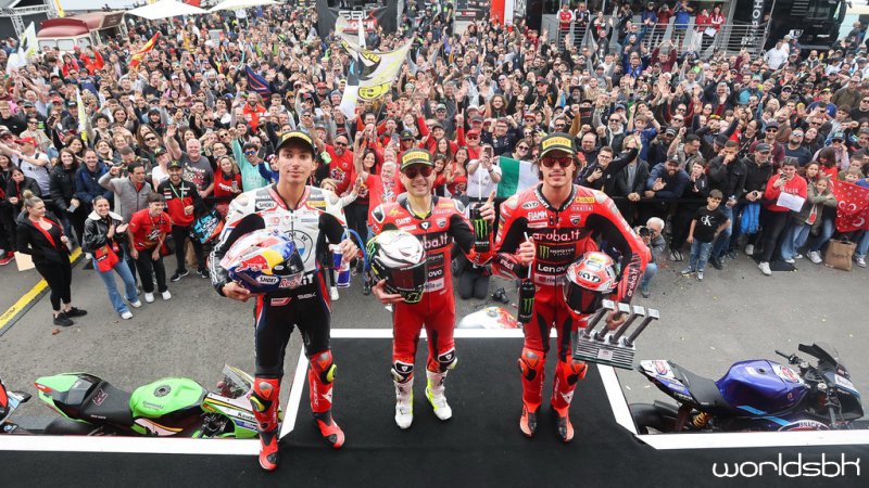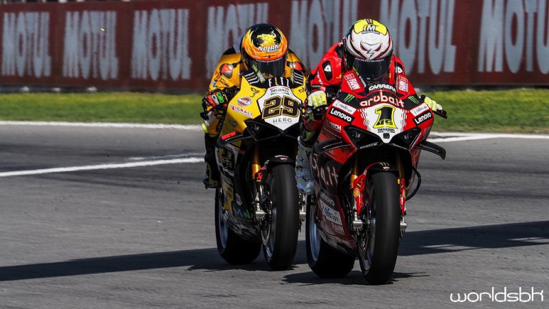 A Álvaro Bautista se le escapa la victoria en la Superpole Race en la última curva