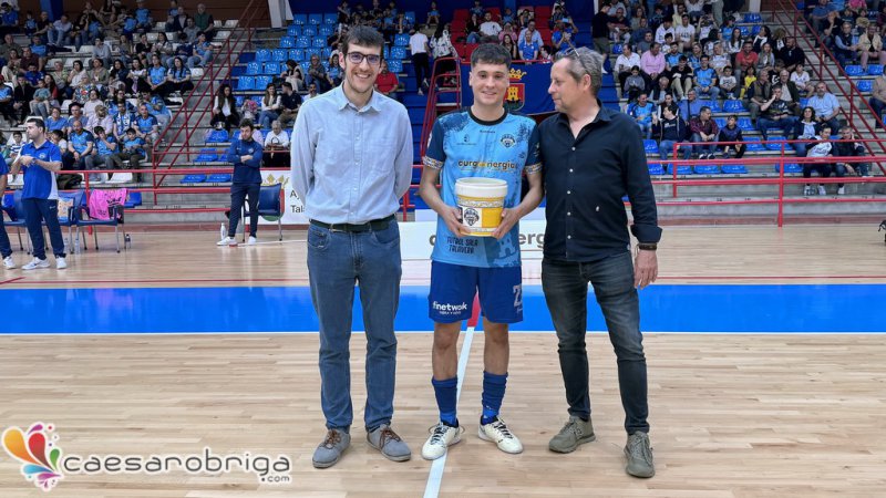 Chule recibe el Trofeo al Jugador Max Color del Fútbol Sala Talavera Aurge Energía