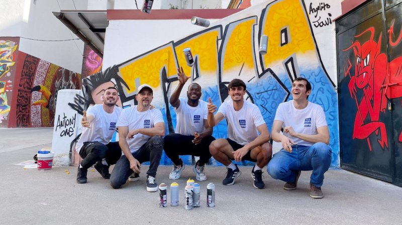 Los jugadores del CF Talavera de la Reina se convierten en artistas grafiteros por un día