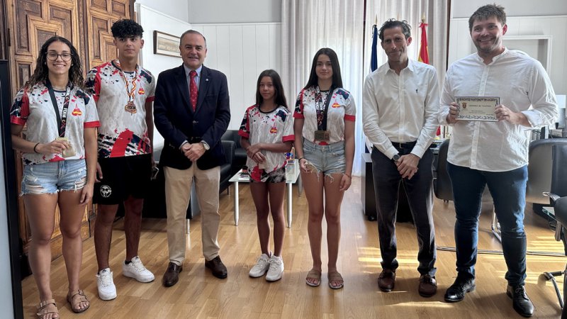 El alcalde, José Julián Gregorio, junto con el concejal de Deportes, Antonio Núñez, han recibido en la Puerta Noble del Ayuntamiento a los...